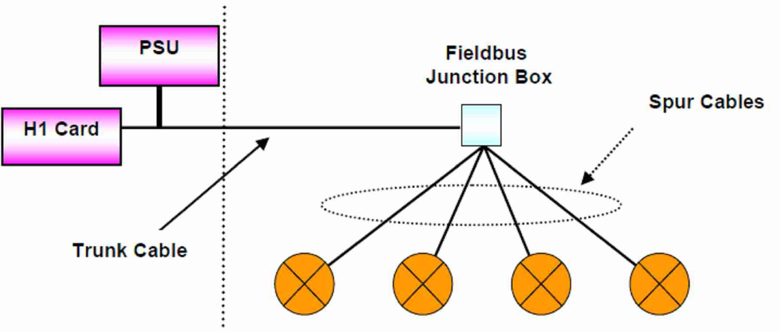 In order to simplify the Fieldbus implementation effort, this topology which mirrors a traditional implementation method, can be used.