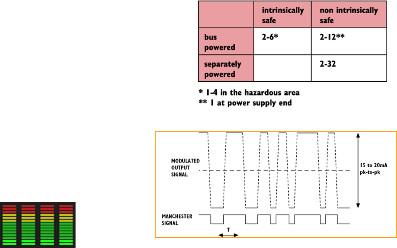 However, bus or non-bus powered devices may be mixed, as well as intrinsically safe or non-intrinsically safe ones.