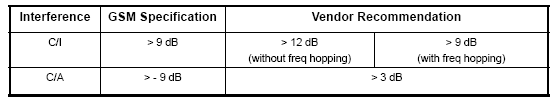 GSM specifications recommend that the carrier-to interference (C/I) ratio is greater than 9 decibels (dB).