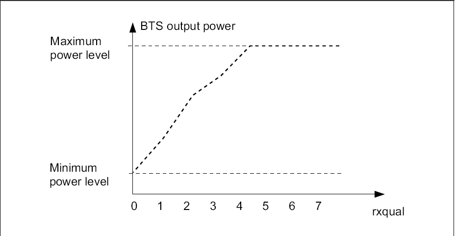 When quality is taken into account the output power is regulated up or down depending on the received quality. The base station power then varies with the quality measured by the MS. When an MS has low RxQual (high quality) the base station
