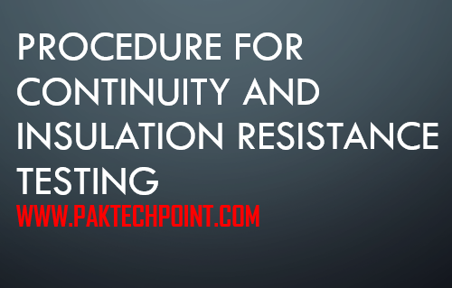PROCEDURE FOR CONTINUITY AND INSULATION RESISTANCE TESTING