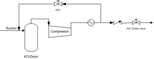 To prevent the compressor choke or stonewall it is required to enforce a certain level of flow resistance in the compressor discharge line. Anti-choke valves are usually placed to this aim on the compressor discharge downstream AS loop and associated check valve. When flow resistance in compressor outlet is low and flow approaches choking conditions, the anti-choke valves close to maintain the required minimum pressure ratio across compressor casing.